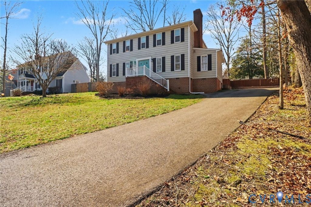 Welcome to this beautiful 4-bedroom, 2.5-bath home tucked away on a quiet cul-de-sac in the highly sought-after Smoketree subdivision. Inside, you'll find freshly refinished hardwood floors and neutral interior paint, creating a warm, move-in-ready feel. The updated kitchen features stainless steel appliances, quartz countertops, recessed lighting, and opens seamlessly to the family room with a modern wood-burning fireplace - perfect for everyday living and entertaining. Elegant crown molding flows throughout the main level, including the formal living and dining rooms, where chair rail and picture frame molding add timeless charm. A dedicated laundry room and attached mudroom (currently used as a home gym) offer everyday functionality and flexibility. Upstairs, enjoy brand-new carpet throughout and a freshly painted primary suite complete with a walk-in closet and beautifully updated ensuite bath featuring a floating double vanity, custom glass and tile shower, and skylight. Three additional generously sized bedrooms provide ample closet space and room for guests, family, or a home office. The hall bath includes a double vanity, skylight, tub/shower combination, and linen storage. A walk-up attic adds even more convenient storage space. Step outside to your private backyard retreat - a spacious two-tiered deck overlooking a custom patio with a wood-burning fireplace, all within a fully fenced yard designed for relaxing or entertaining year-round. Located within walking distance to Gordon Elementary School, Monacan High School, and the Smoketree Community Pool (optional membership, no HOA), this sidewalk-lined neighborhood offers convenience and community. You'll also enjoy easy access to shopping, dining, and major commuter routes. This is a rare opportunity where all the updates have already been done for you - simply move in and enjoy!